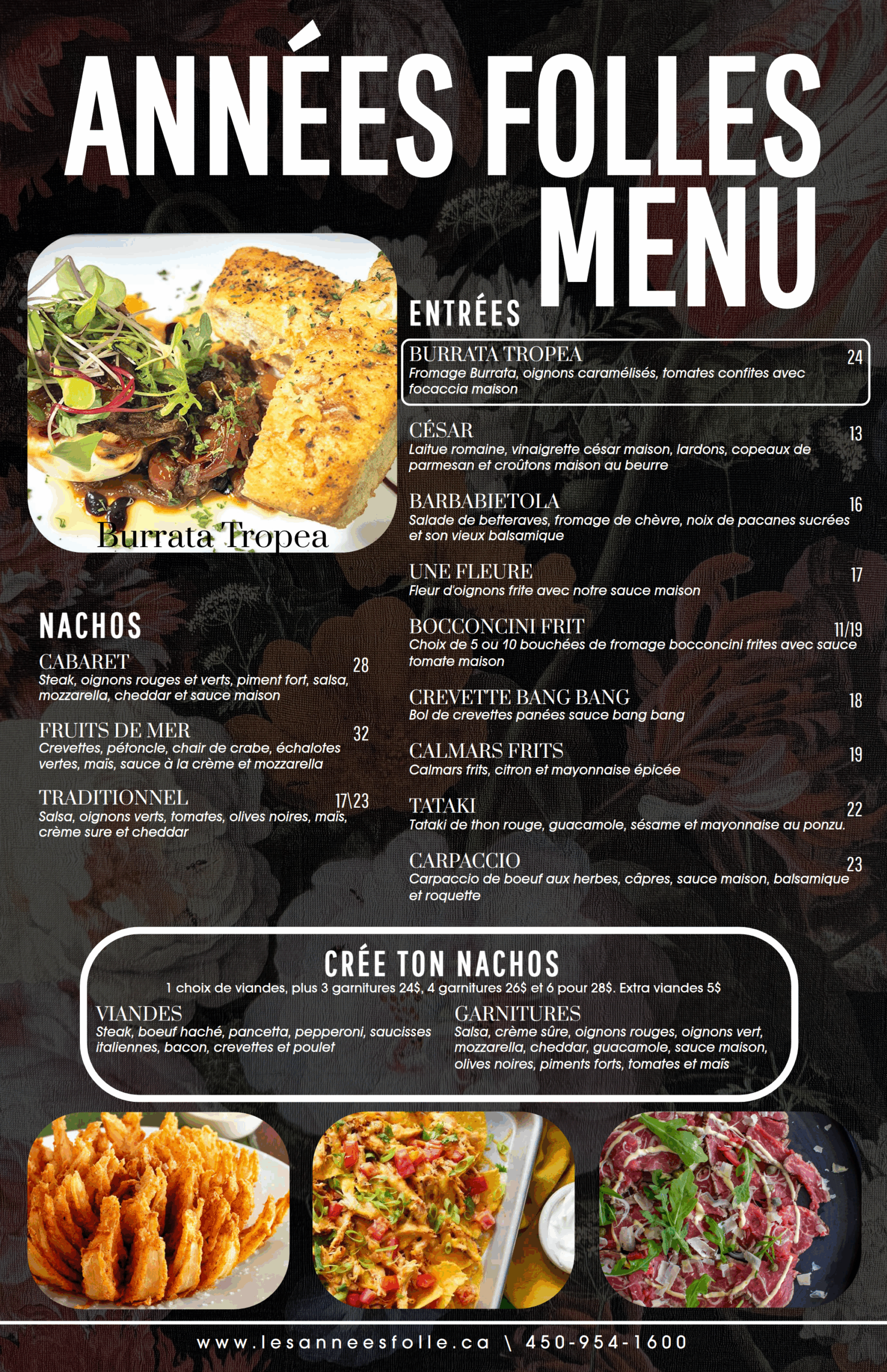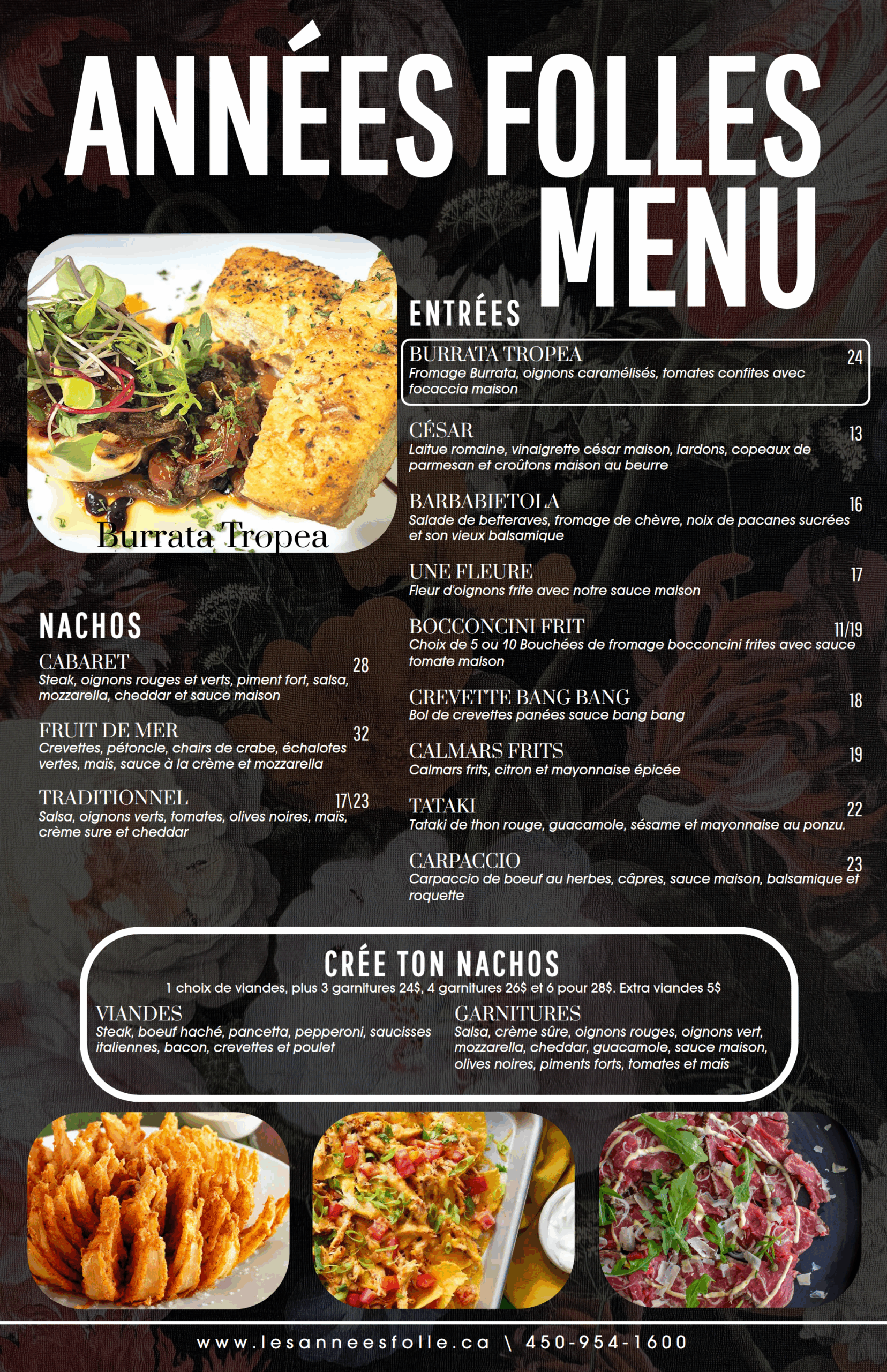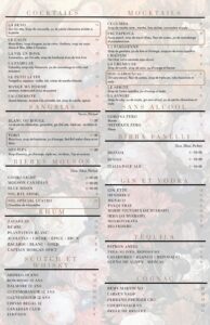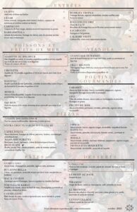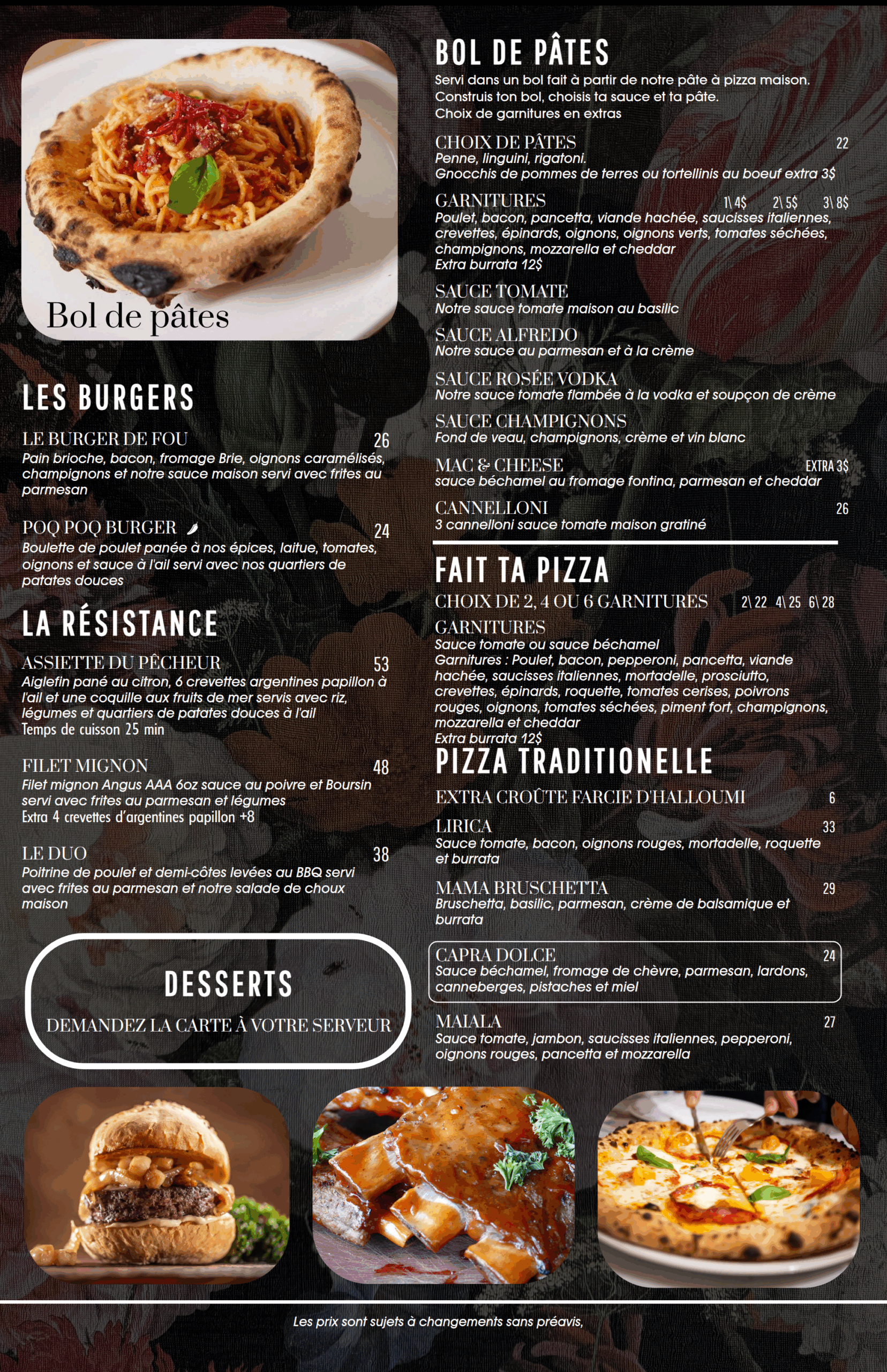 Menu en salle à manger du mercredi au samedi soir à compter de 17h.