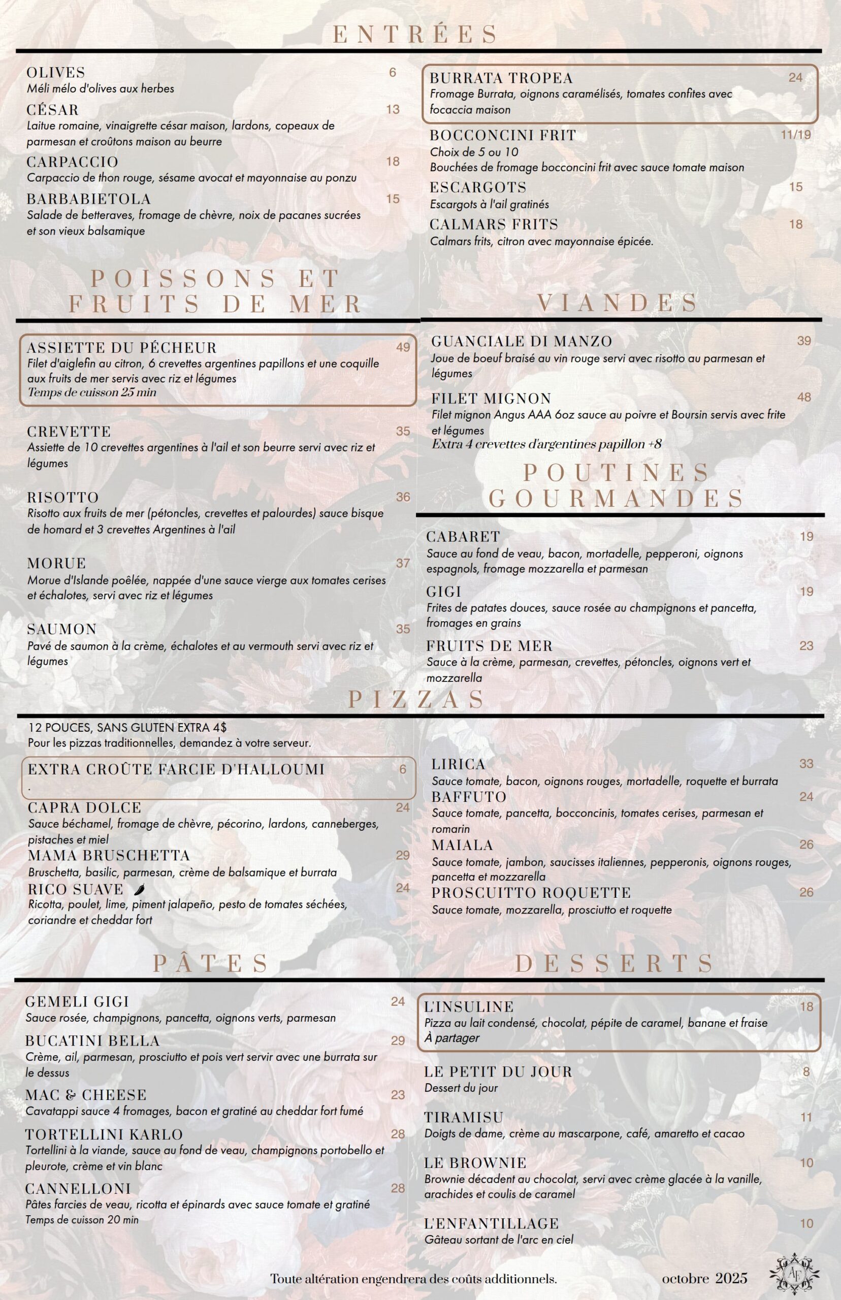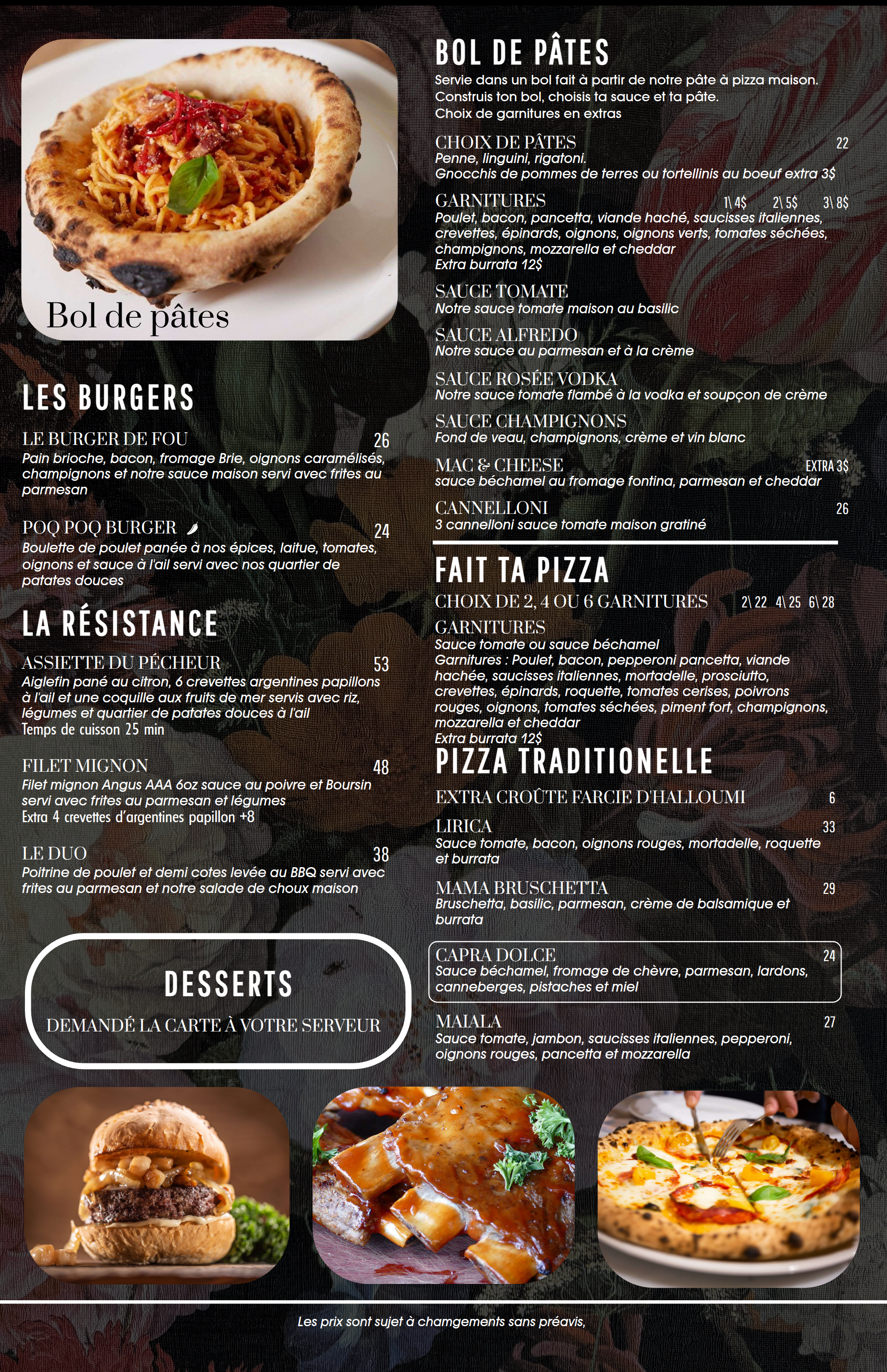 Le menu est suget à changement sans aucun pré-avis. Merci.